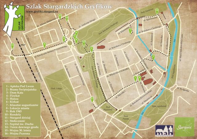 Miasto Stargard, oprócz stałego rozwoju nowoczesnych rozwiązań, nie zapomina o swojej przeszłości. Pragnąc zachować w pamięci, ocalić od zapomnienia miejsca, które niegdyś były bardzo ważne dla społeczności naszego miasta, stworzyliśmy Szlak Stargardzkich Gryfików. To właśnie one – symboliczne Gryfiki pokazują, w których, czasem pozornie mało istotnych miejscach, znajdowały się kluczowe dla poprzednich pokoleń kościoły, cmentarze i inne ważne budowle.